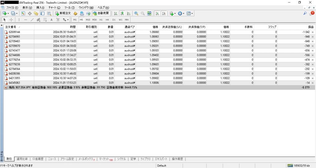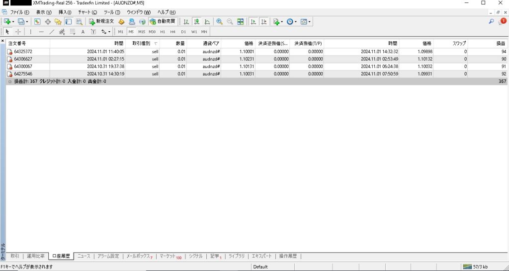 11月1週目は、11月1日の1日のみの状況です。4ポジション決済され、367円の利益でした。