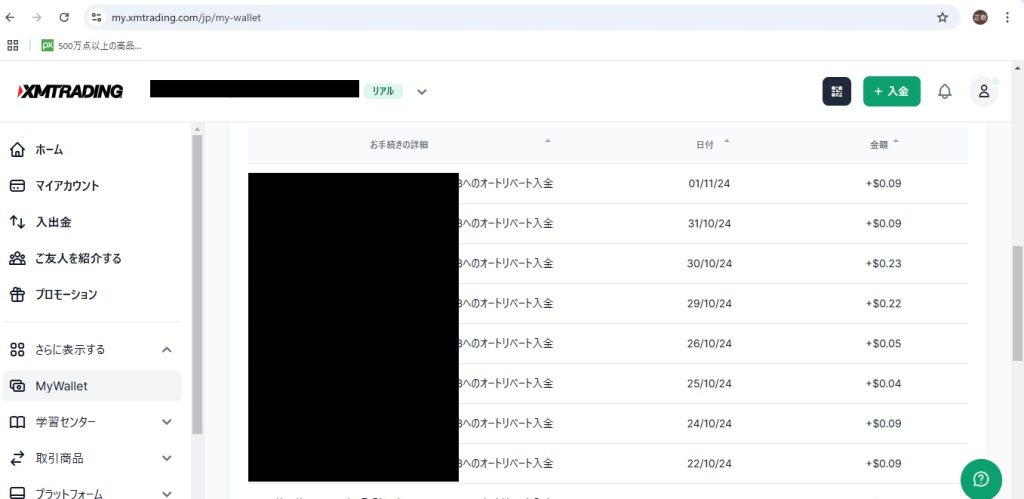11月1日に0.09ドルのキャッシュバックがありました。
