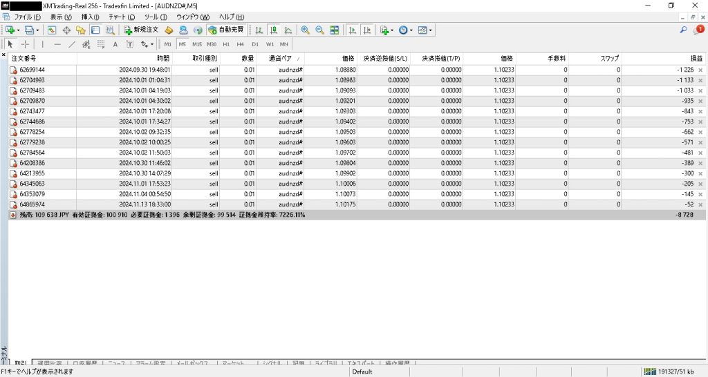 「激勝ちAUDNZD」EA 11月3週目のリアルな運用状況&利益!