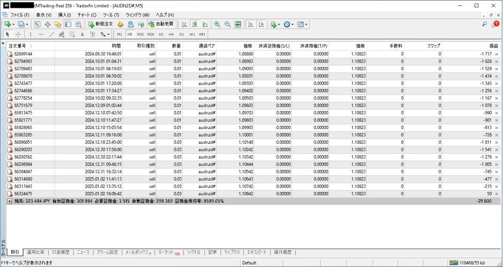 1月4日現在、20ポジションを保有し、21,600円の含み損です。