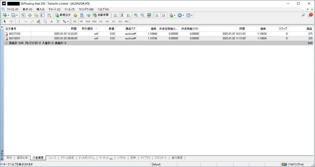 2ポジションが決済され、540円のプラスとなっています。