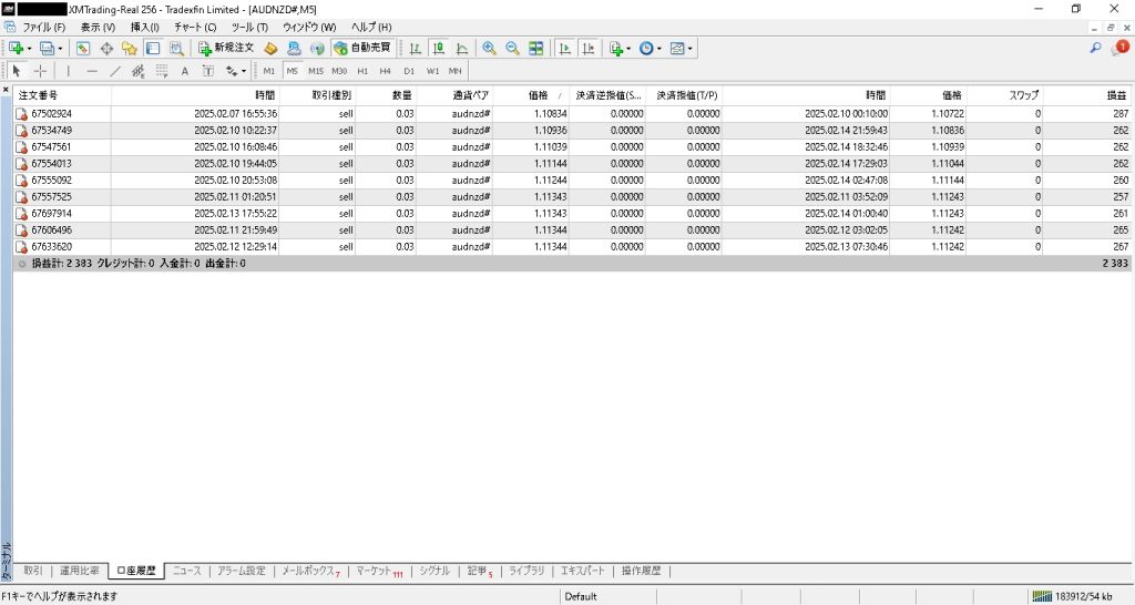 9ポジションが決済され、2,383円のプラスとなっています。
