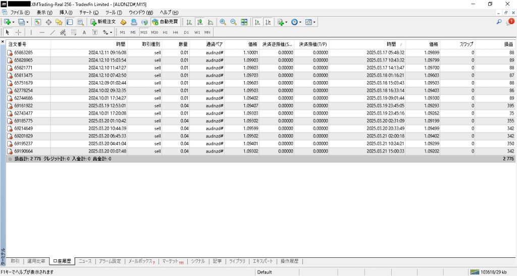 14ポジションが決済され、2,776円のプラスとなっています。