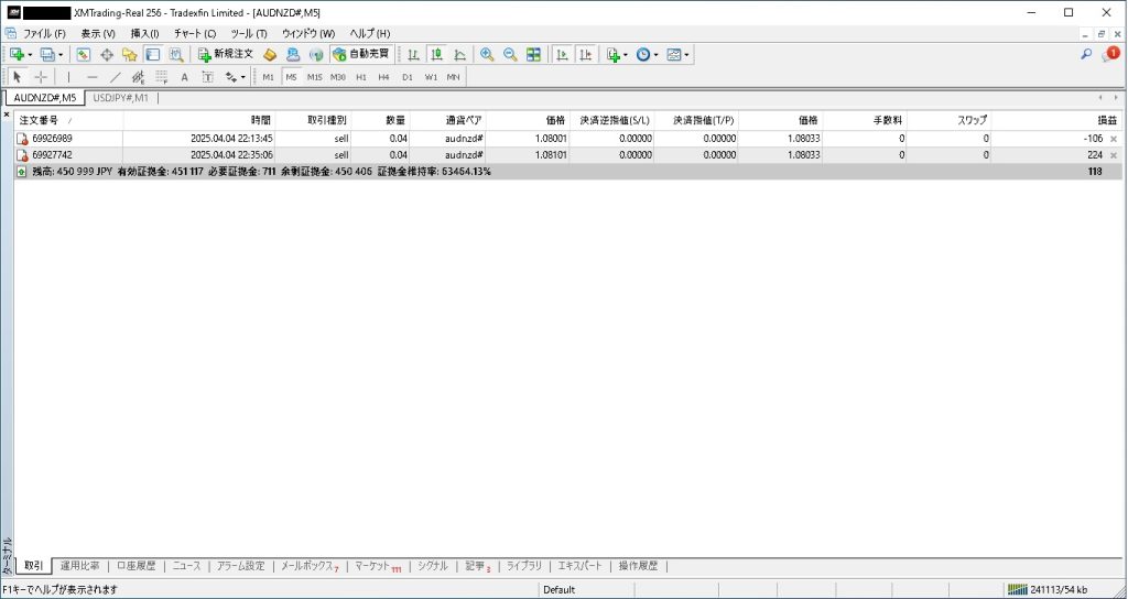 4月5日現在、2ポジションを保有し、118円の含み益です。