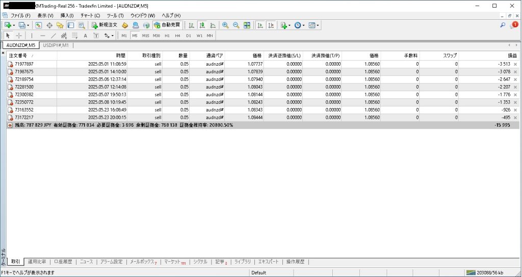 5月24日現在、8ポジションを保有し、15,995円の含み益です。
