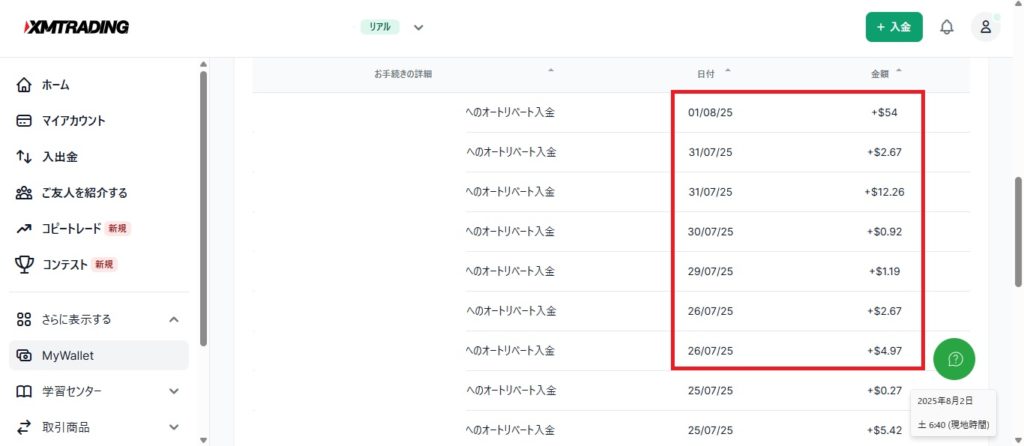 別口座での取引量が多かったので、多めのキャッシュバックとなりました。