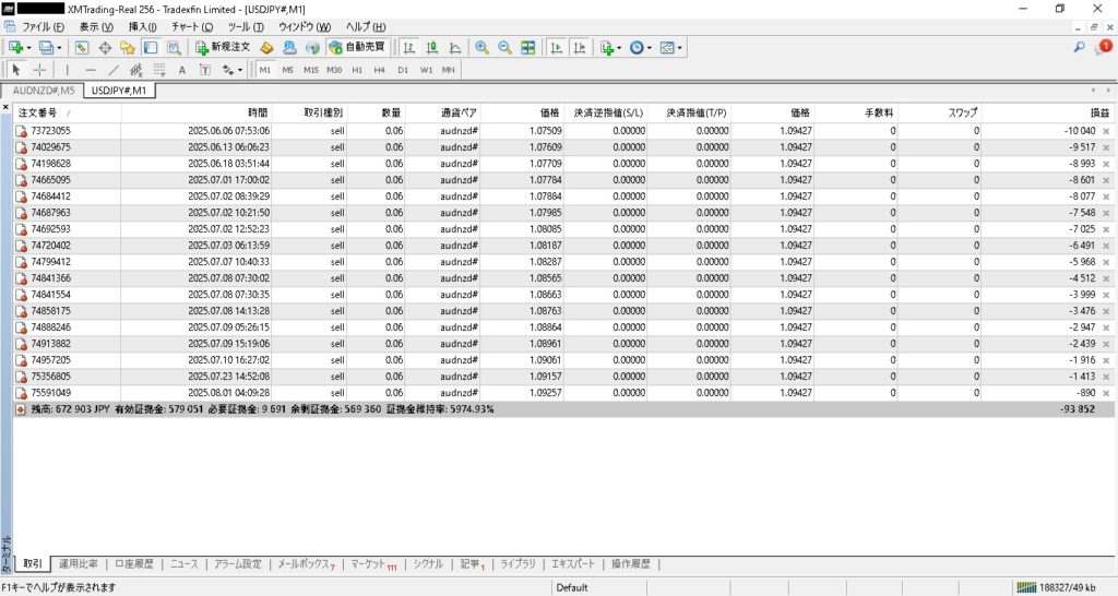 8月2日現在、17ポジションを保有し、93,852円の含み損です。