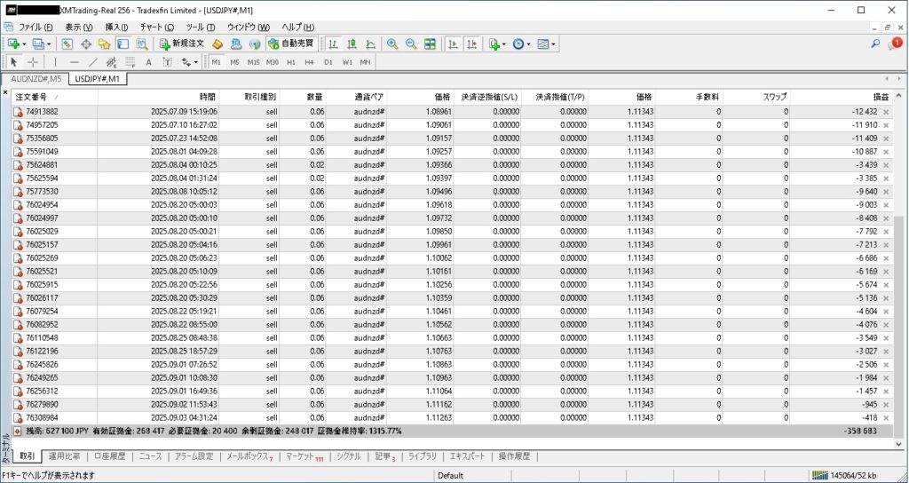 9月6日現在、37ポジションを保有し、358,683円の含み損です。