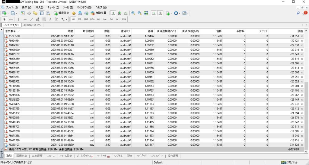 11月8日現在、44ポジションを保有し、907,088円の含み損です。