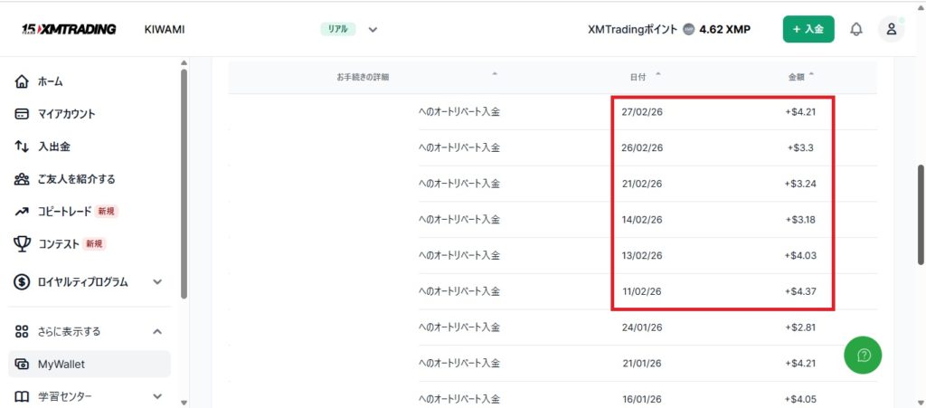 2月は、22.33ドル(約3,483円)のキャッシュバックがありました。